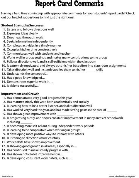 Read Online preschool report card comments Reader